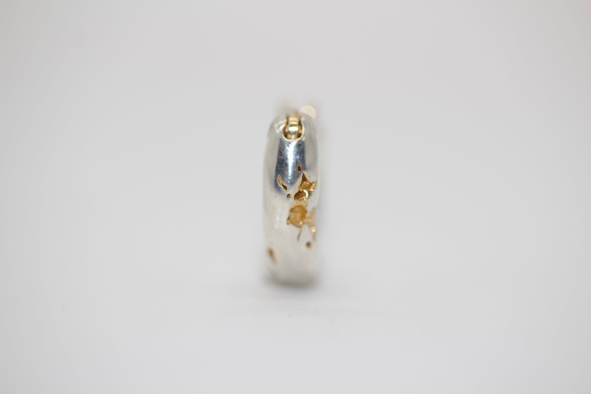 GOLD (K18GP) は、SILVER925にK18ゴールドコーティングを施したものです。使用状況や経年により、コーティングが徐々に摩耗し、色が薄くなることがございます。コーティングが薄れた場合でも、銀本来の風合いを楽しんでいただけますが、コーティングの再施行を希望される場合は、ご相談ください。