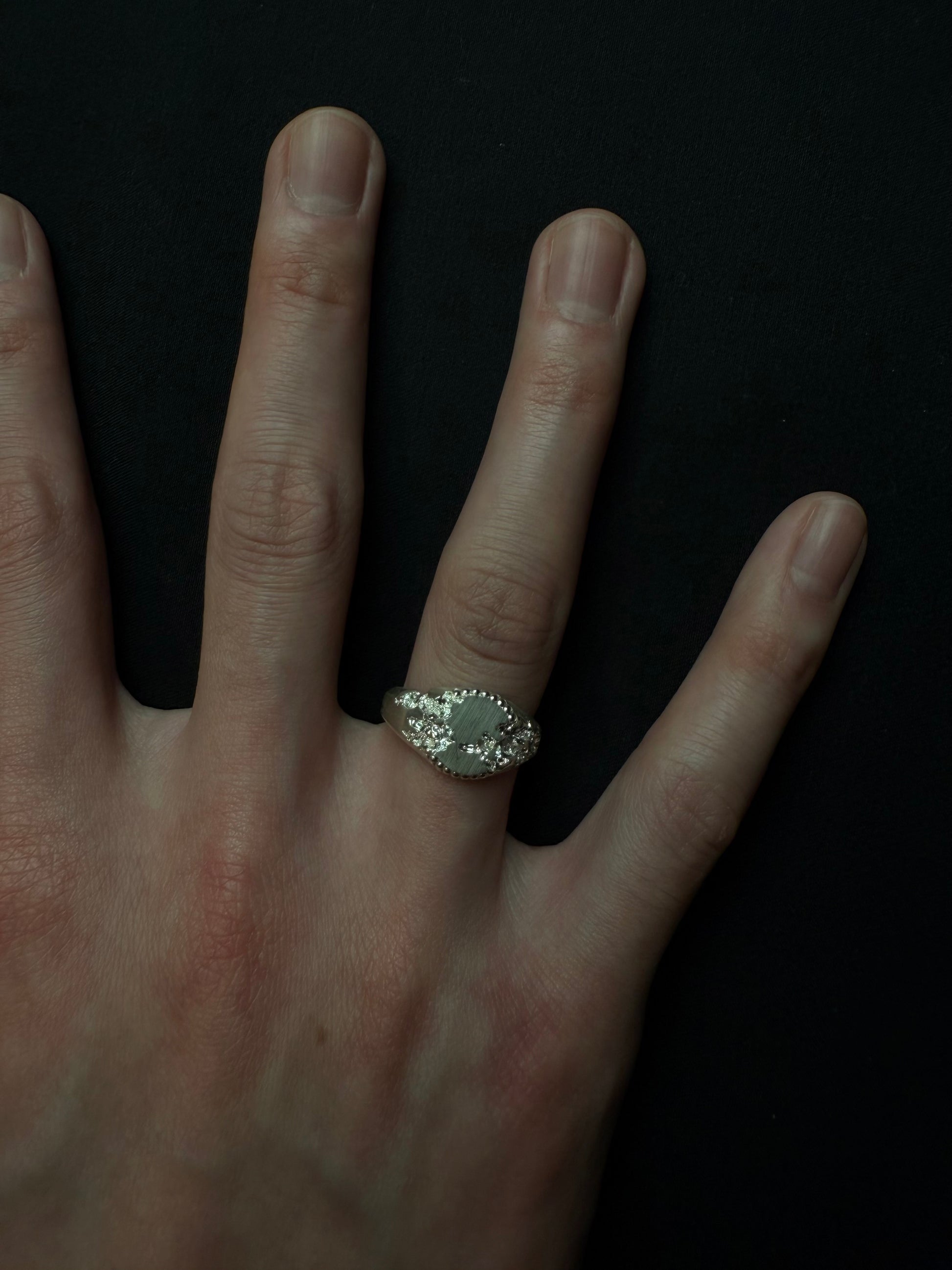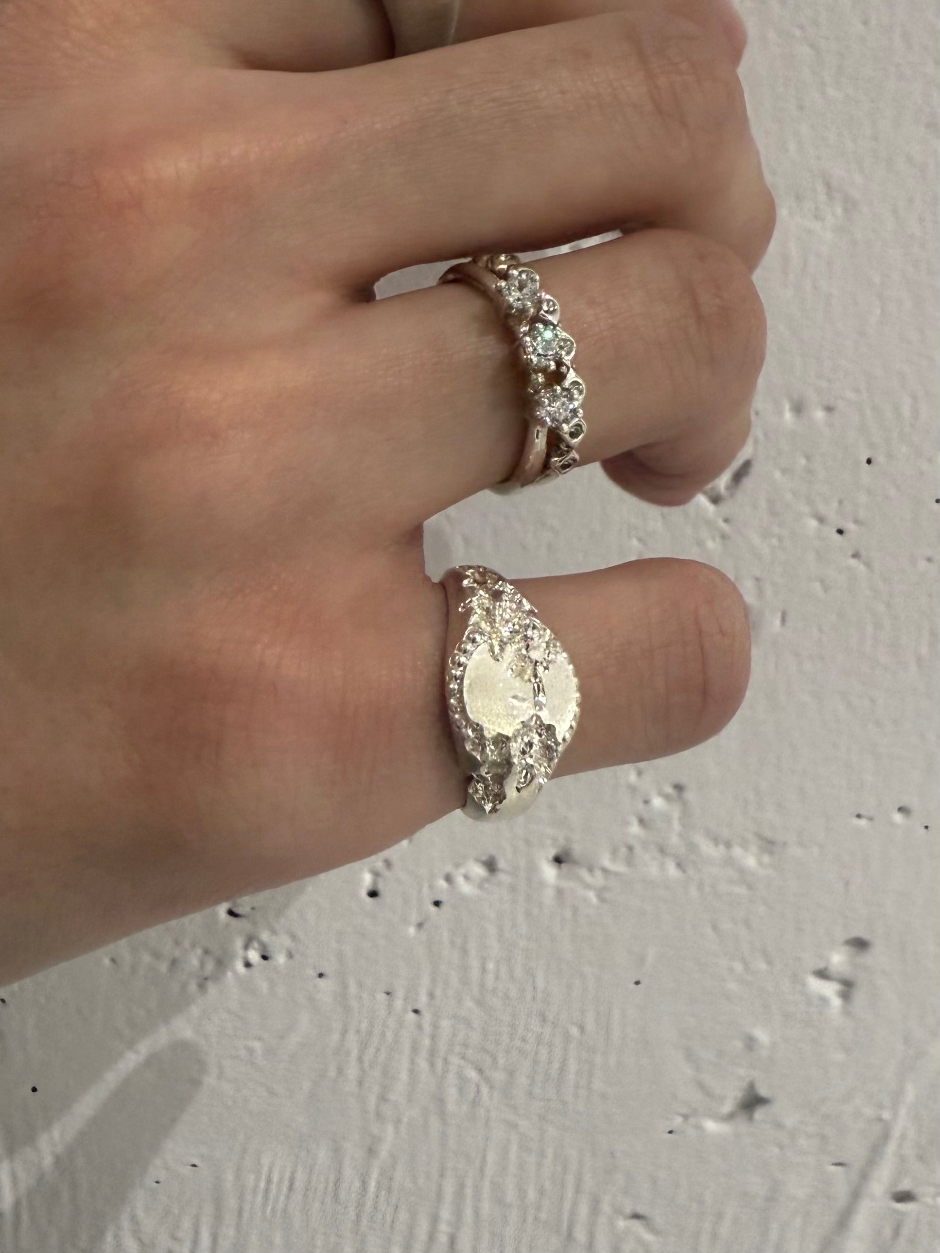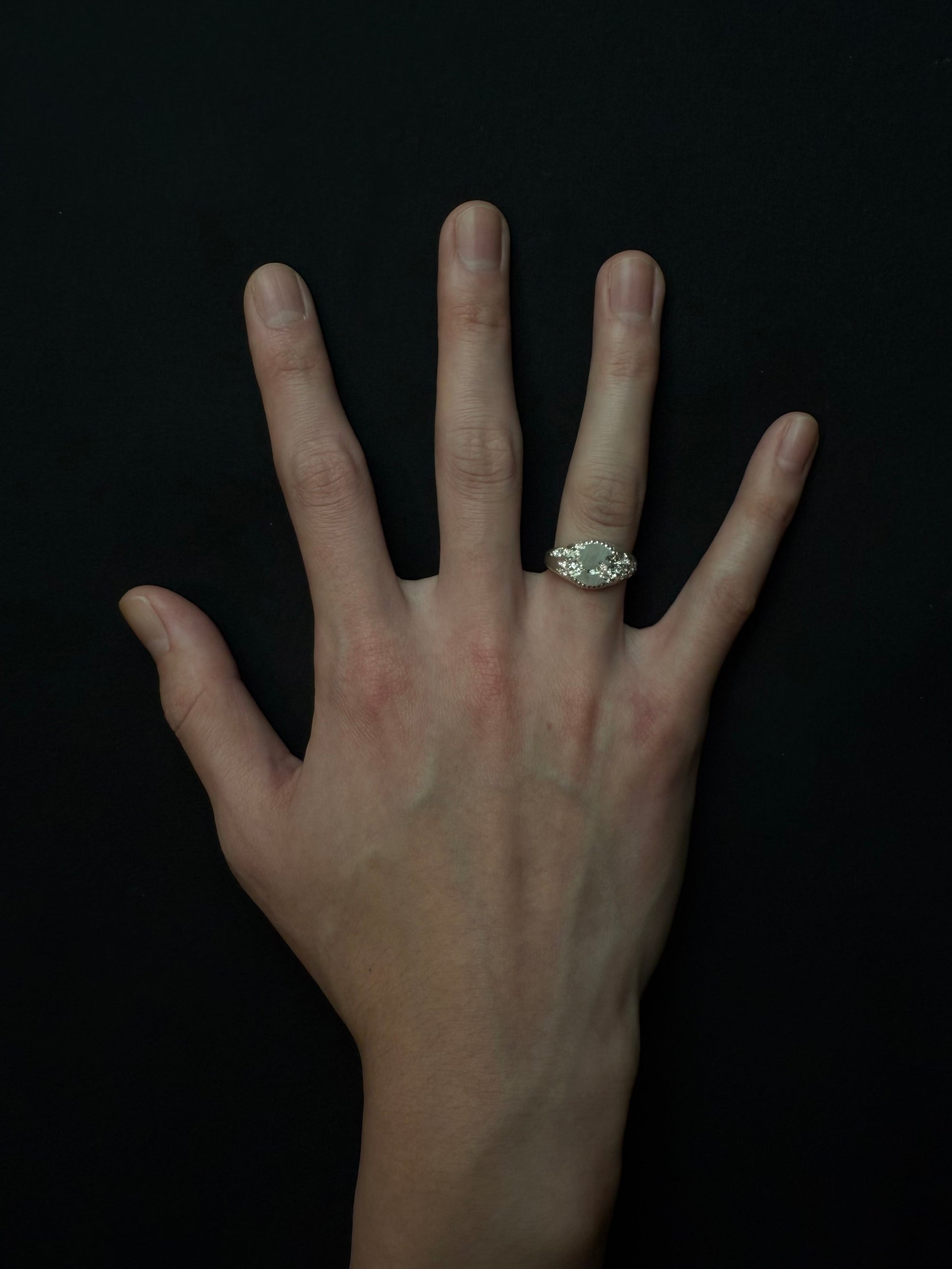 その裂け目に埋め込まれたのは、強い煌めきをもつモアッサナイト。