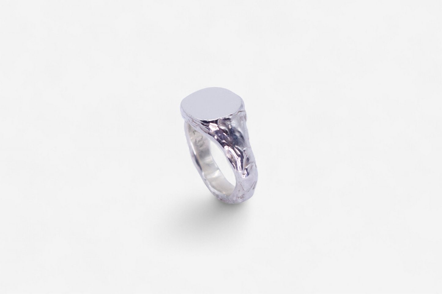無作為な表面と、意図されたテーブルの対比が、造形に静かな緊張を生む。