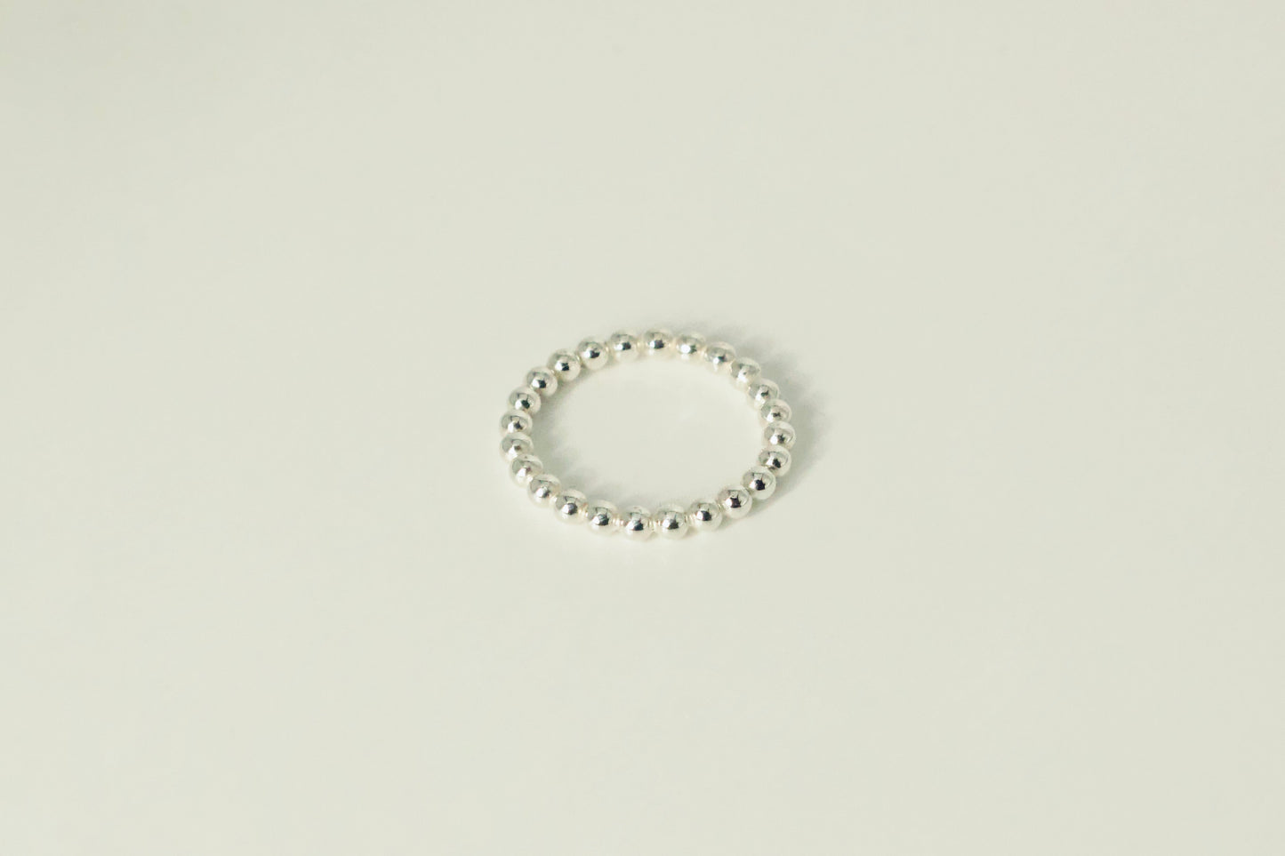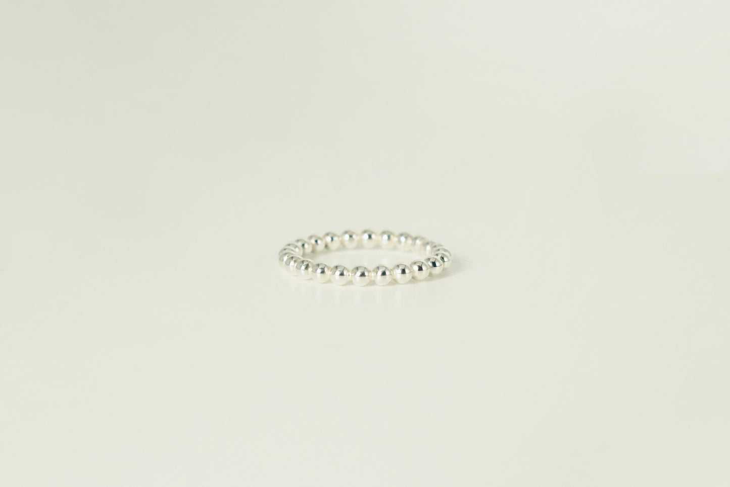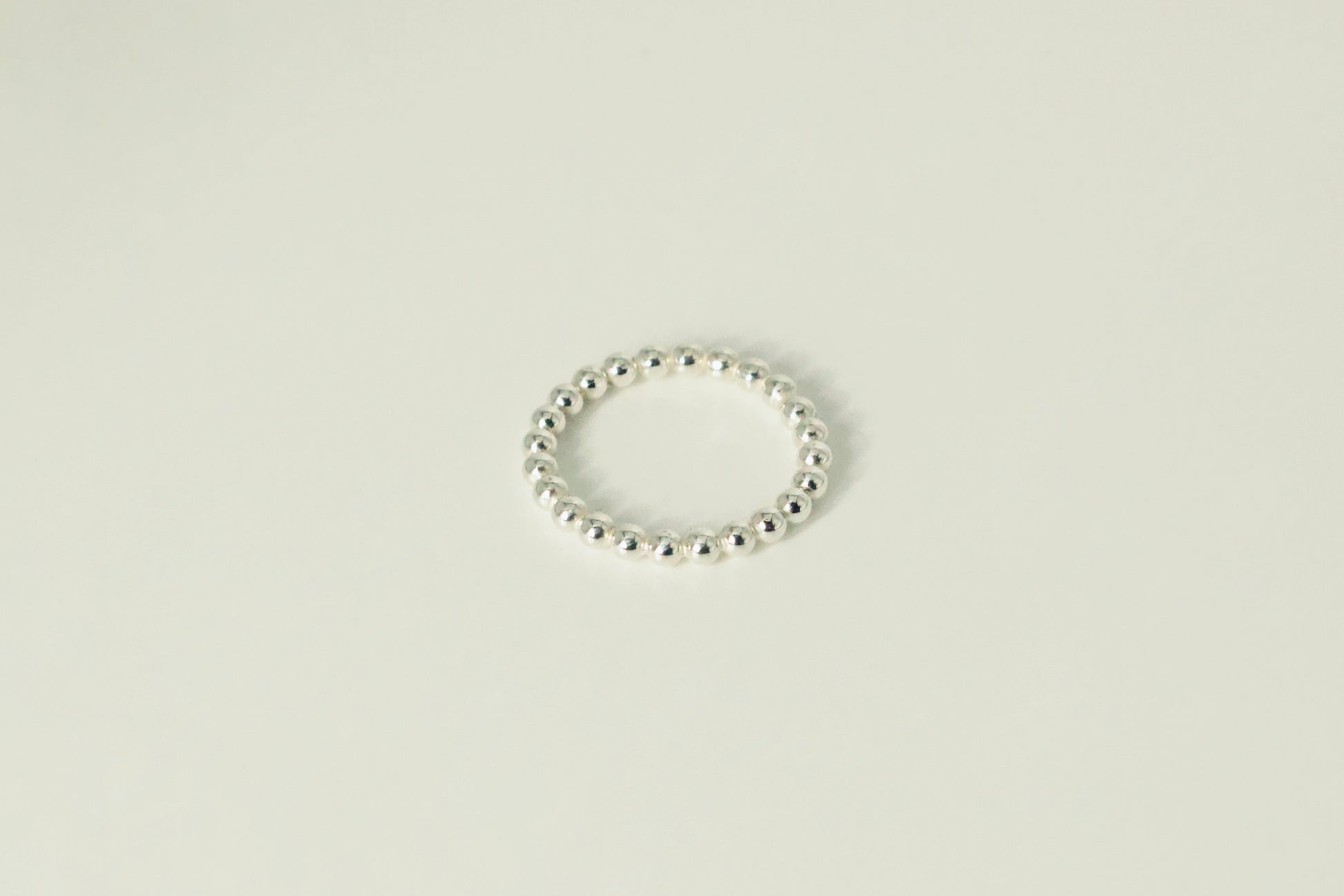 シルバーの小さな粒が連なった、繊細で洗練されたデザインのリング。