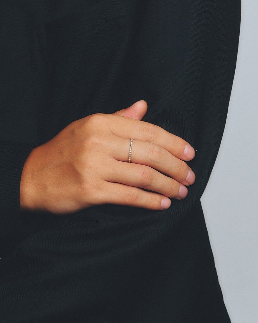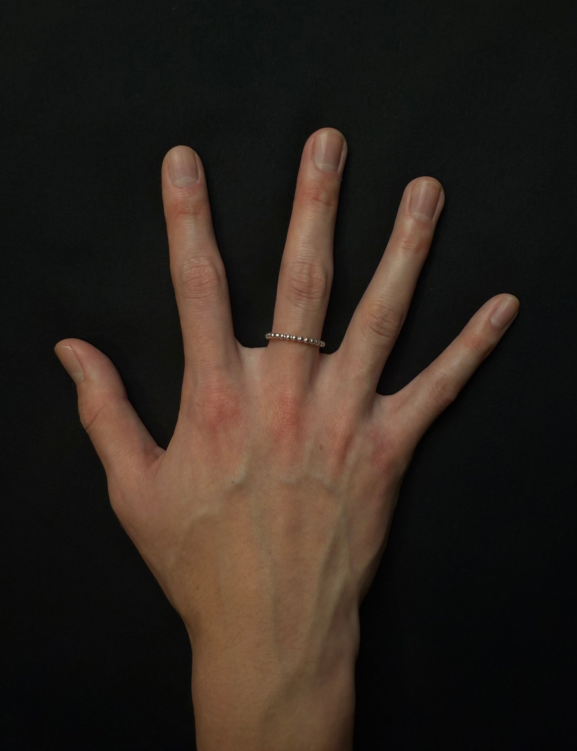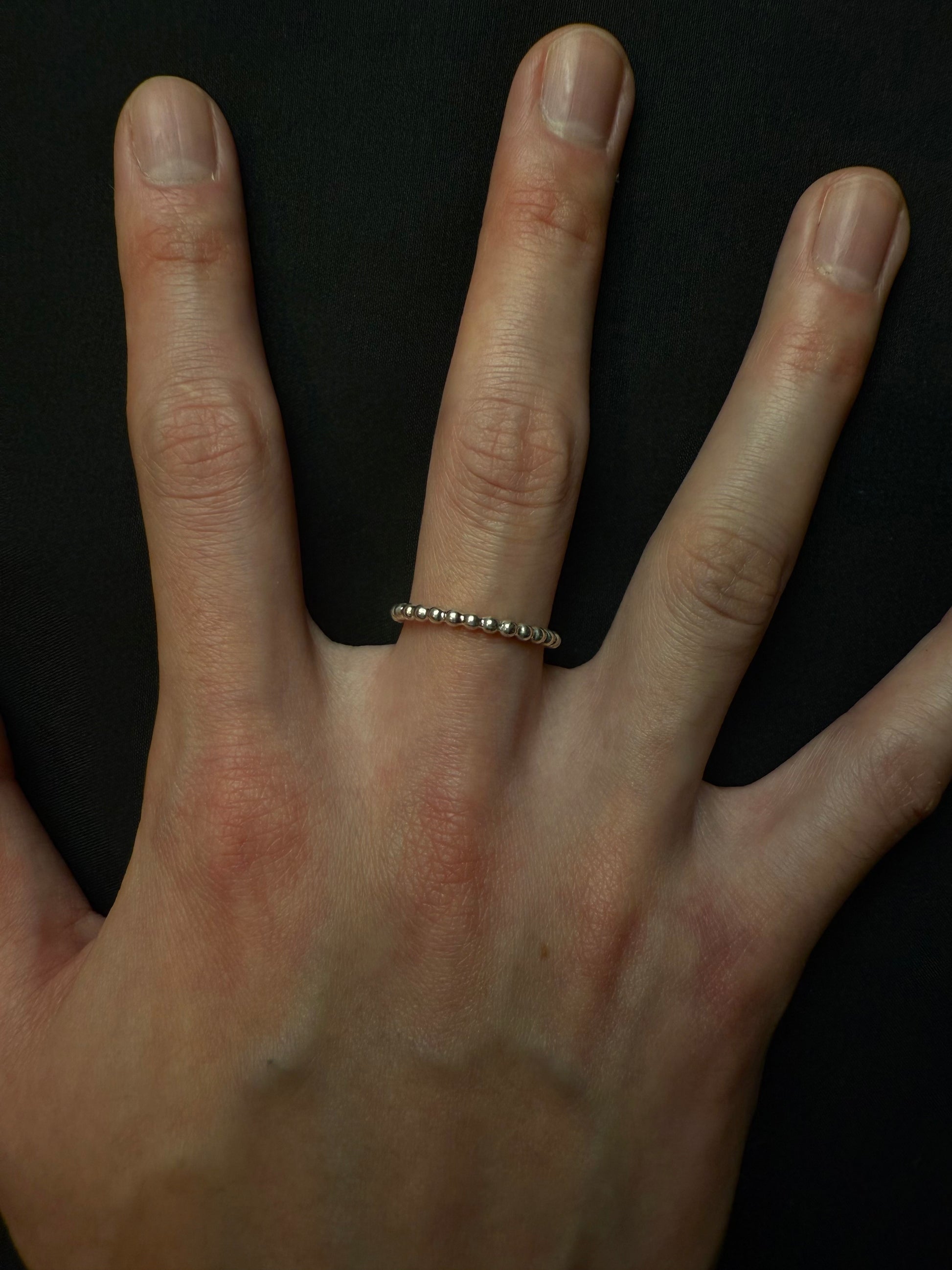 シルバーの小さな粒が連なった、繊細で洗練されたデザインのリング。