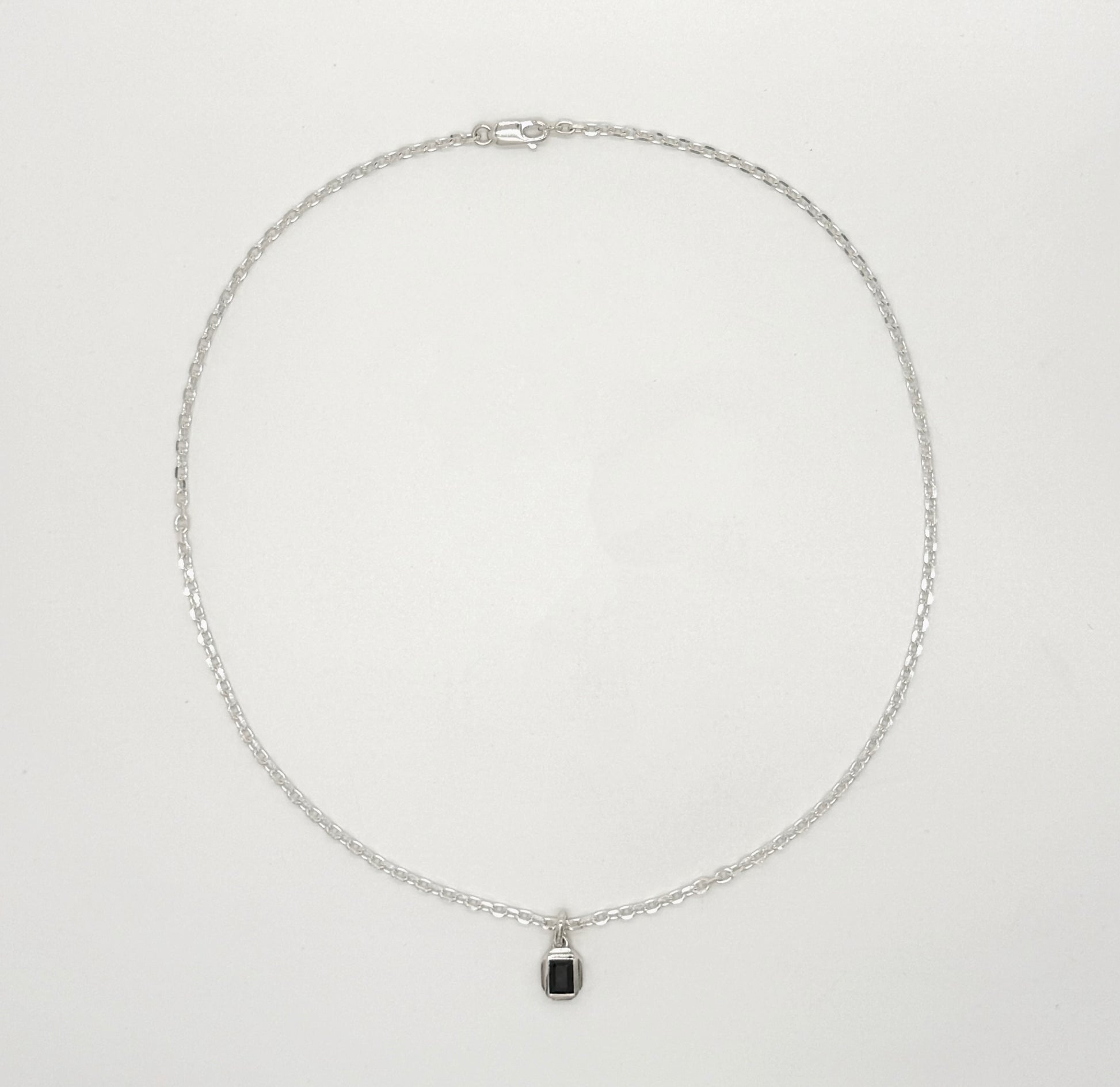 漆黒の輝きを湛える、オニキスのドロップネックレス。