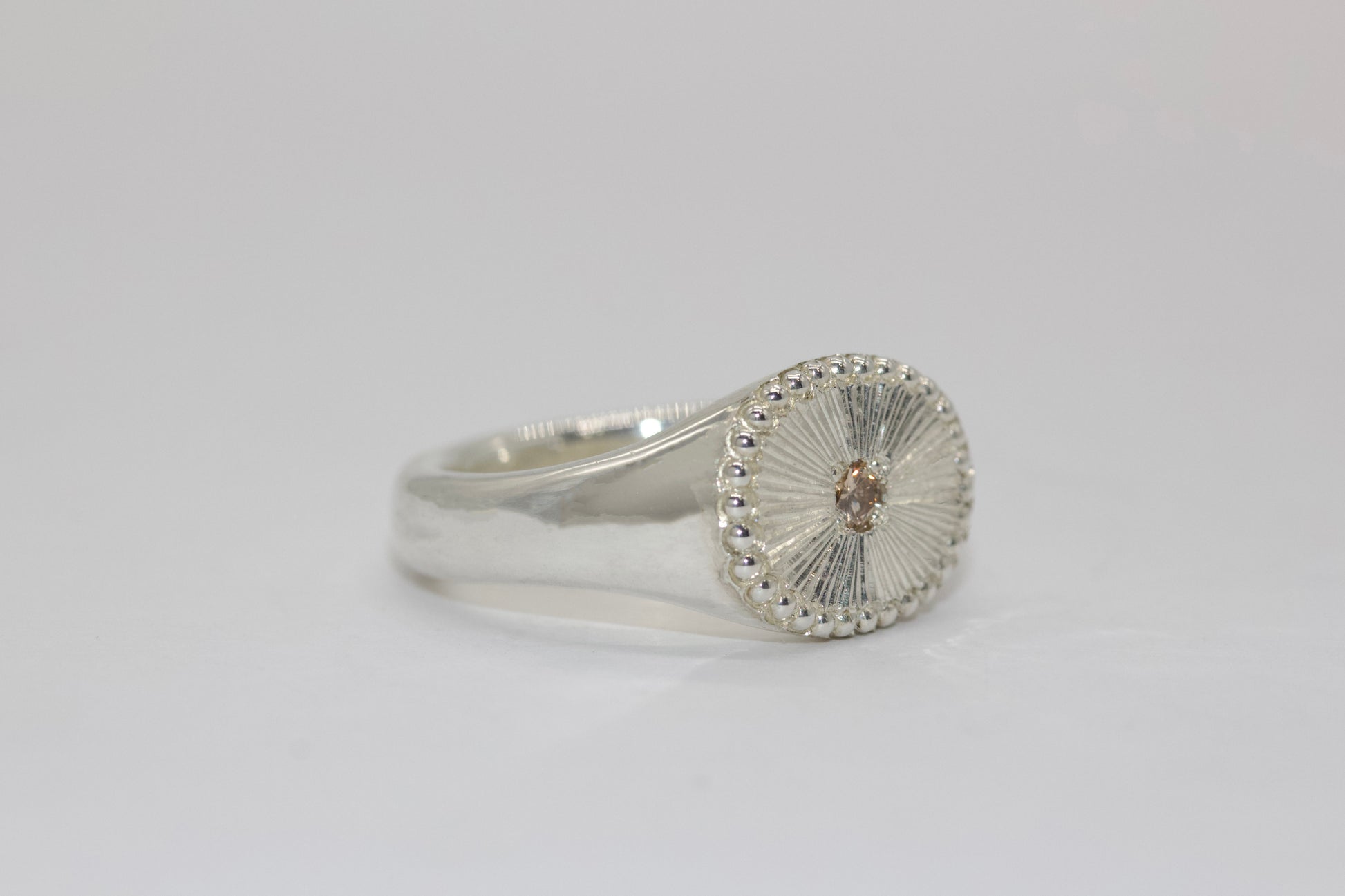 中央には天然のブラウンダイヤモンドが静かに光を放ち、落ち着いた華やかさを演出します。