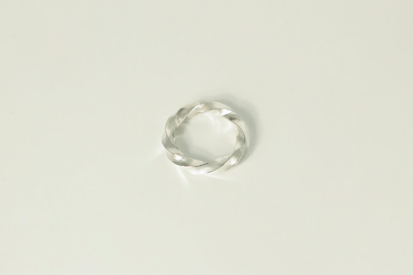 「Twisted Ring」は、シンプルながらも印象的なねじりデザインが魅力のリングです。シルバー925を使用し、柔らかにねじられた形状が手元にエレガントなアクセントを加え、どんなスタイルにも自然に溶け込みます。ひとつでも、他のリングと重ね付けしても存在感を発揮し、日常から特別なシーンまで幅広く活躍します。